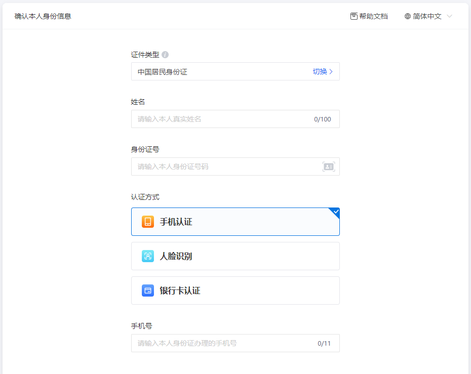 手机号认证:通过本人在运营商办理的手机号完成认证;