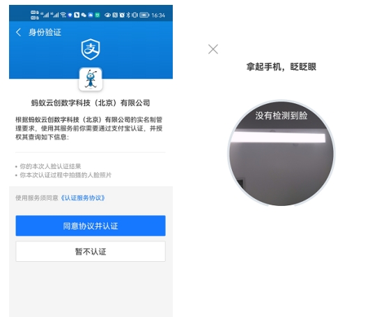 人脸认证:法定代表人通过刷脸完成认证;