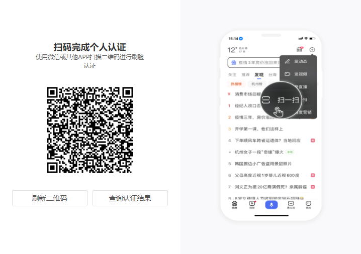 姓名和身份证号二要素核验通过后,会弹出快捷刷脸二维码。