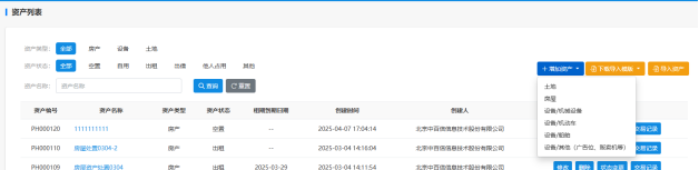 有两种方式,一种是通过下载模板后导入,适用于增加批量资产。