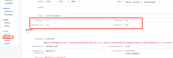委托方页面中会自动加载委托方基本信息以及联系方式、价款划付银行信息、开票信息等,若未提前录入相关信息,则需要手动补充。