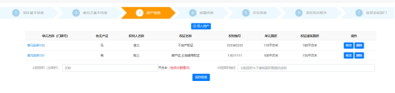 录入评估信息后,可对资产分别填写租金参考评估值,并上传评估报告,默认可以缺省。但若上传了评估报告,则租金参考评估值需要必填。