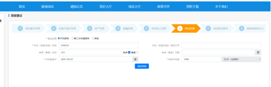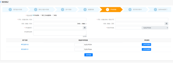 标的信息确认无误后,点击⑤评估信息进入评估信息录入界面。