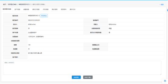 在我的待办列表中可以查看委托方项目公告确认待办,点击“办理”后,查看公告信息并给出审核意见。