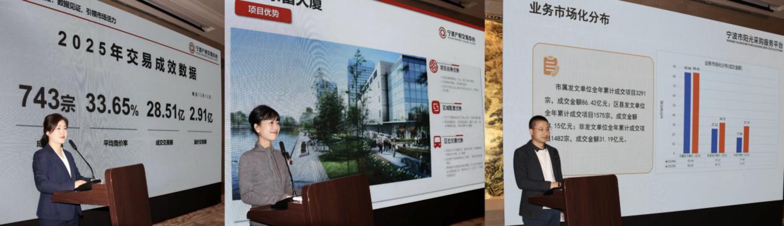 2025年12月19日,宁波产权交易中心隆重举办了“聚力同行·共启新程”2025年度交易成效及业务推介活动。活动旨在系统回顾2025年度交易成果,凝聚市场合作共识,拓展优质资源渠道,优化客户服务体验,进一步彰显中心在区域要素市场化配置中的关键作用与服务能级。